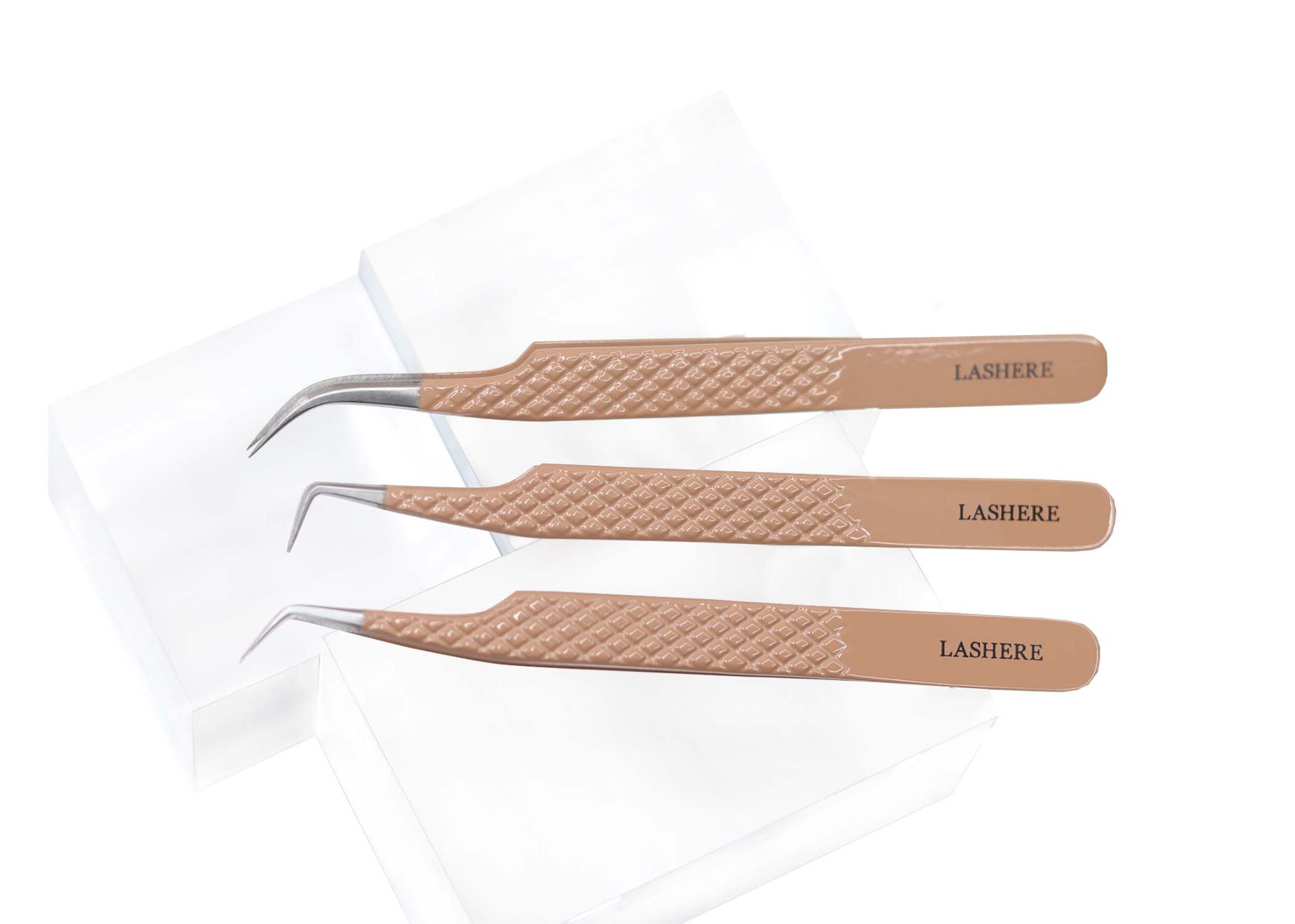 These long curved tweezers are specifically designed for creating classic & volume lash sets.